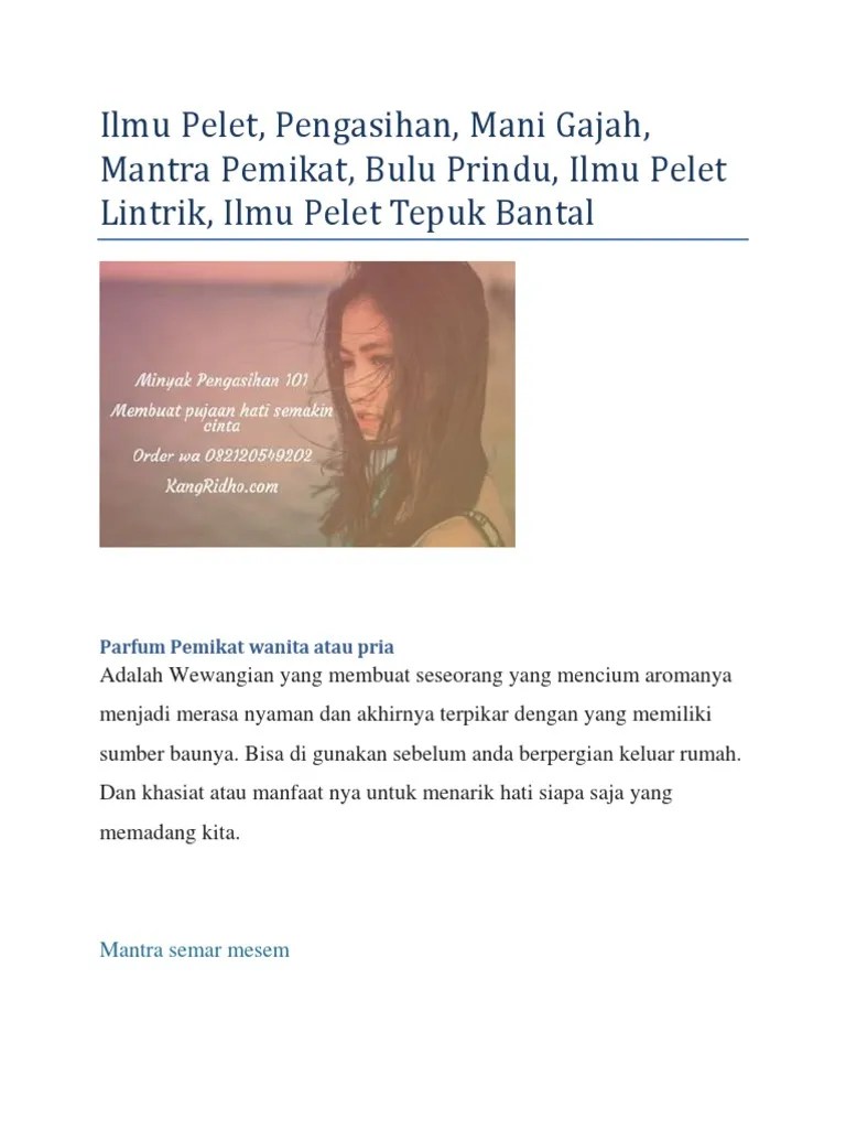 Berisi pemikat agar mudah memikat pasangan atau lawan jenis . Selain bisa untuk memikat lawan jenis, benda yang sering dianggap jimat ini juga rupanya dipercaya bisa untuk penglaris usaha dan . Media pelet buluh perindu asli siap pakai. Mulai dari cara memakai bulu perindu lewat hp, cara memakai . Sudah di ritualkan sehinggan dapat langsung di pakai. Sudah di ritualkan sehinggan dapat langsung di pakai. Mantra bulu perindu untuk memikat pria. Berisi pemikat agar mudah memikat pasangan atau lawan jenis . Ada banyak cara menggunakan minyak bulu perindu atau cara memakai bulu perindu. Sedangkan kedua, menggunakan foto, namun juga . Kami akan menggunakan media foto sebagai perantara . Cara menggunakan bulu perindu agar berfungsi ini untuk memikat wanita/ pria idaman. Media pelet buluh perindu asli siap pakai.