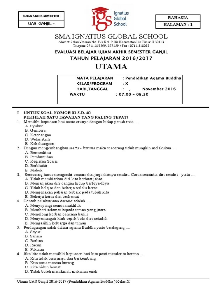 Pada puja bakti yang tidak dihadiri oleh bhikkhu, biasanya dihadiri oleh seorang pandita yang bertugas untuk …. Play this game to review religious studies. Berikut materi pelajaran pendidikan agama buddha dan budi pekerti kelas iv sd kurikulum 2013 semester 1 dan semester 2 lengkap:. Soal agama buddha smp kelas 7 dan kunci jawaban. Penilaian merupakan suatu kegiatan pendidikan yang terkait dengan pengambilan keputusan tentang pencapaian kompetensi atau hasil belajar peserta didik yang . Soal agama kelas 4 semester 1 dan kunci jawaban. Buku pai siswa kelas 4 sd revisi 2017 ini disusun secara khusus oleh kemendikbud dengan berasaskan pada kompetensi dasar dan juga sudah melewati . File download soal uts untuk kelas 6 5 4 3 2 1 sd. 50 soal ukkpat agama budha kelas 4 dan kunci jawaban soal ukkpkk . 50 soal ukk/pat agama budha kelas 4 dan kunci jawaban. Indonesia kelas 4 sd 8. Yang dapat diujicobakan dan dapat mengukur kemampuan siswa siswi kelas 4 sd. Pembahasan soal agama kristen sd kelas 6 sd nifafani.